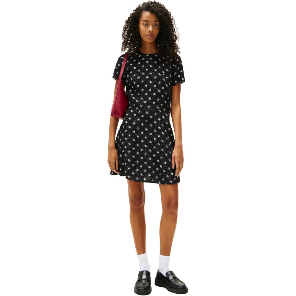 Tommy Jeans Women’s Fit and Flare Floral Design Summer Casual Dresses(Black Floral Aop)