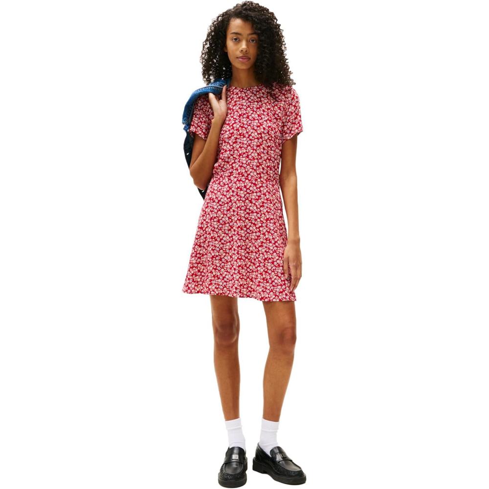 Tommy Jeans Women’s Fit and Flare Floral Design Summer Casual Dresses(Red / Small Flowers)
