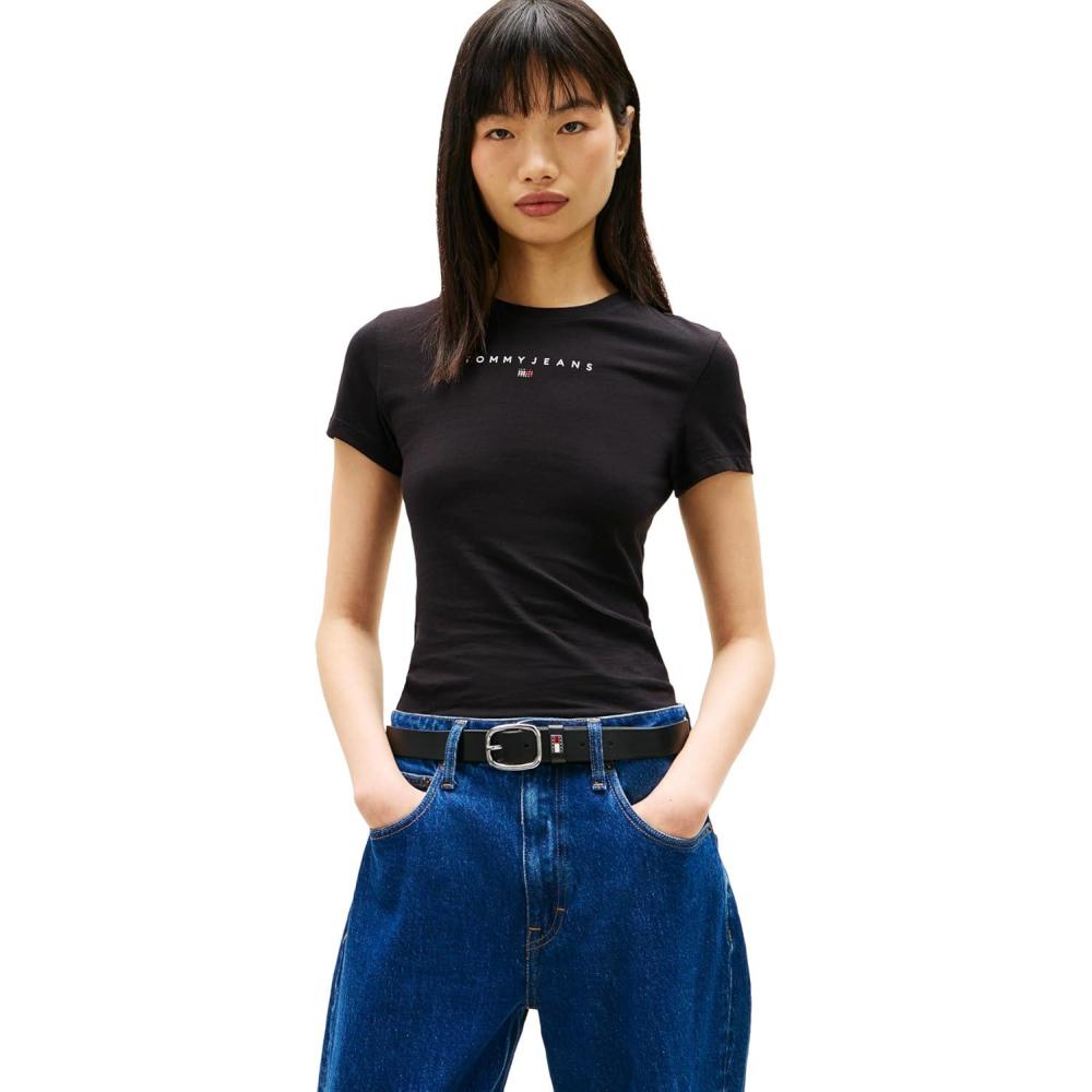 Tommy Jeans Women’s Graphic Tee with Rhinestone Flag Logo(Black)
