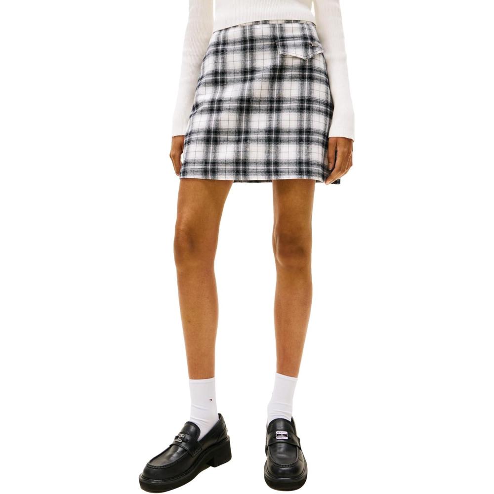 Tommy Jeans Women’s High Waist A-line Mini Skirt with Pocket and Embellished Logo(Ecru)