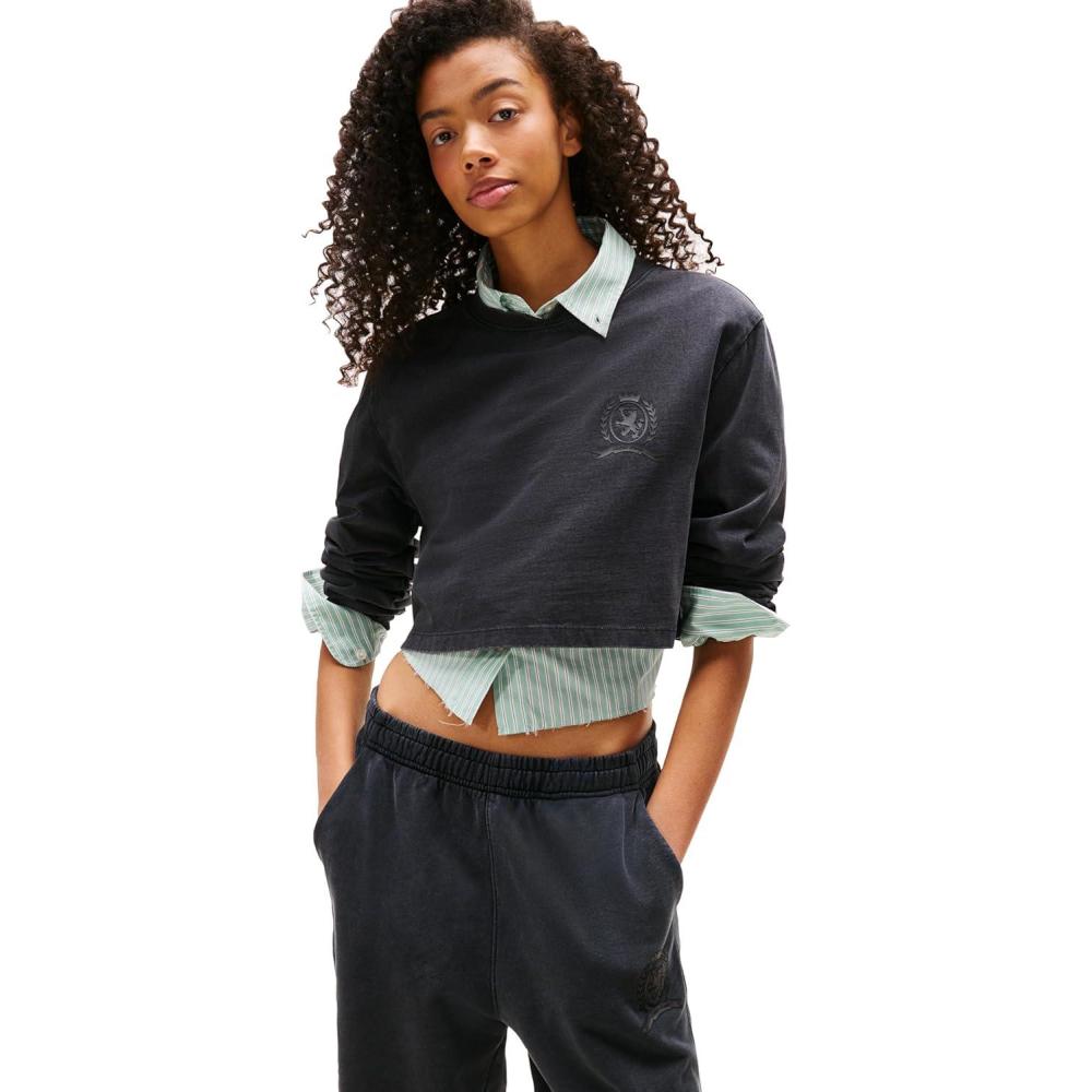 Tommy Jeans Women’s Long Sleeve Graphic Tee with Crest Logo(Black)