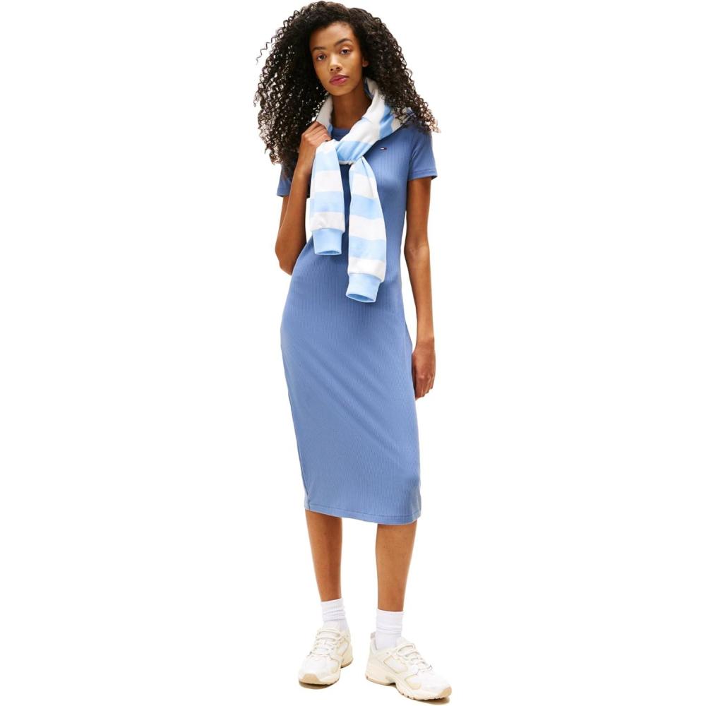 Tommy Jeans Women’s Bodycon Midi Dress with Logo Detail(Blue Moment)