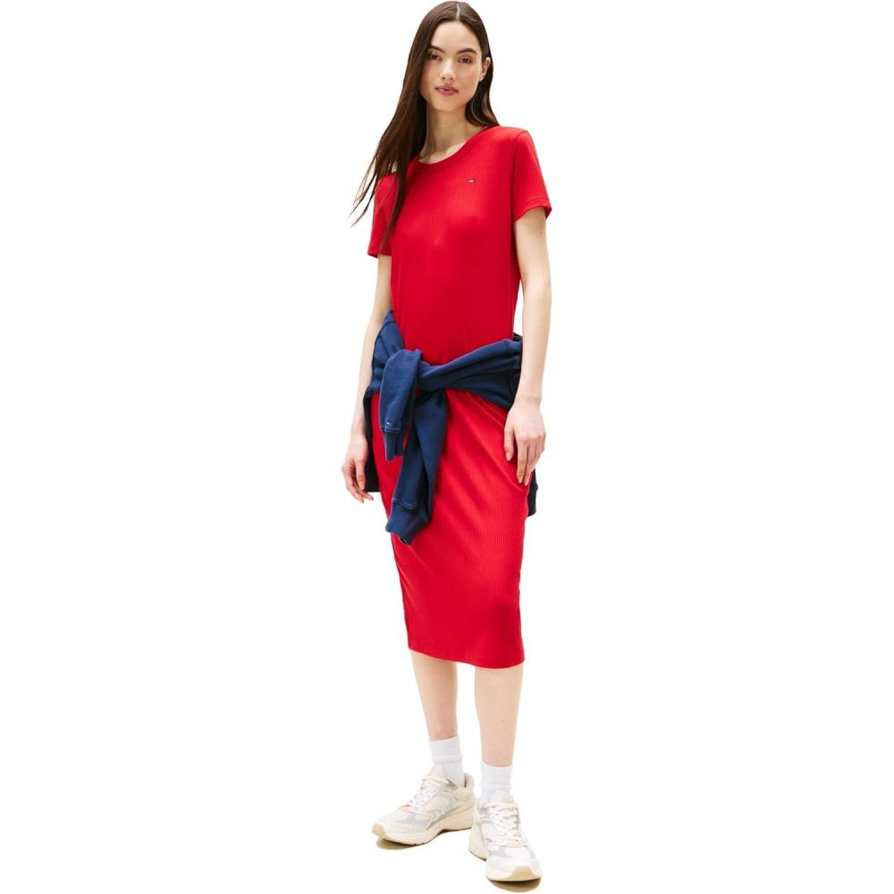 Tommy Jeans Women’s Bodycon Midi Dress with Logo Detail(Sapphire Red)