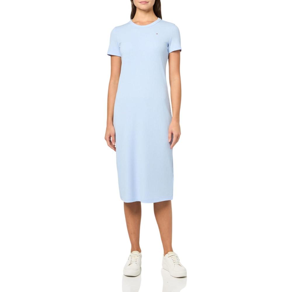 Tommy Jeans Women’s Bodycon Midi Dress with Logo Detail(Sweet Blue)
