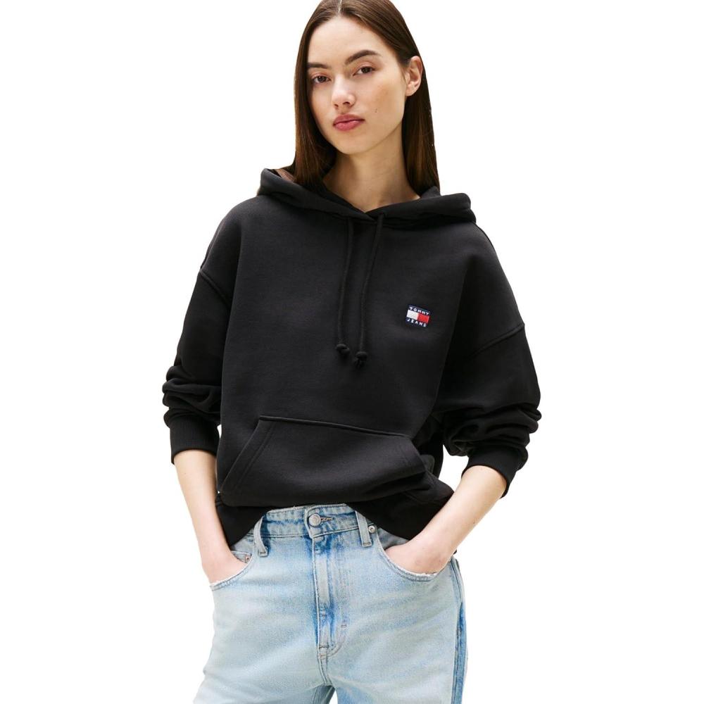 Tommy Jeans Women’s Medium Weight Pullover Hoodie With Embroidered Flag Logo(Black)