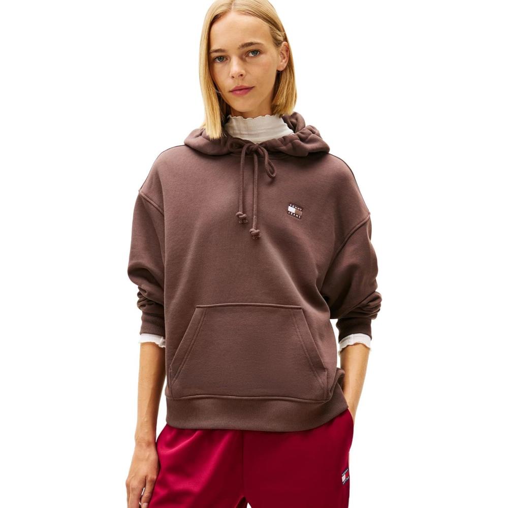 Tommy Jeans Women’s Medium Weight Pullover Hoodie With Embroidered Flag Logo(Black Walnut)