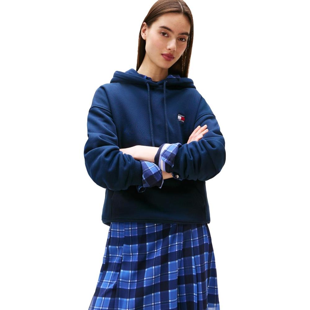 Tommy Jeans Women’s Medium Weight Pullover Hoodie With Embroidered Flag Logo(Dark Night Navy)