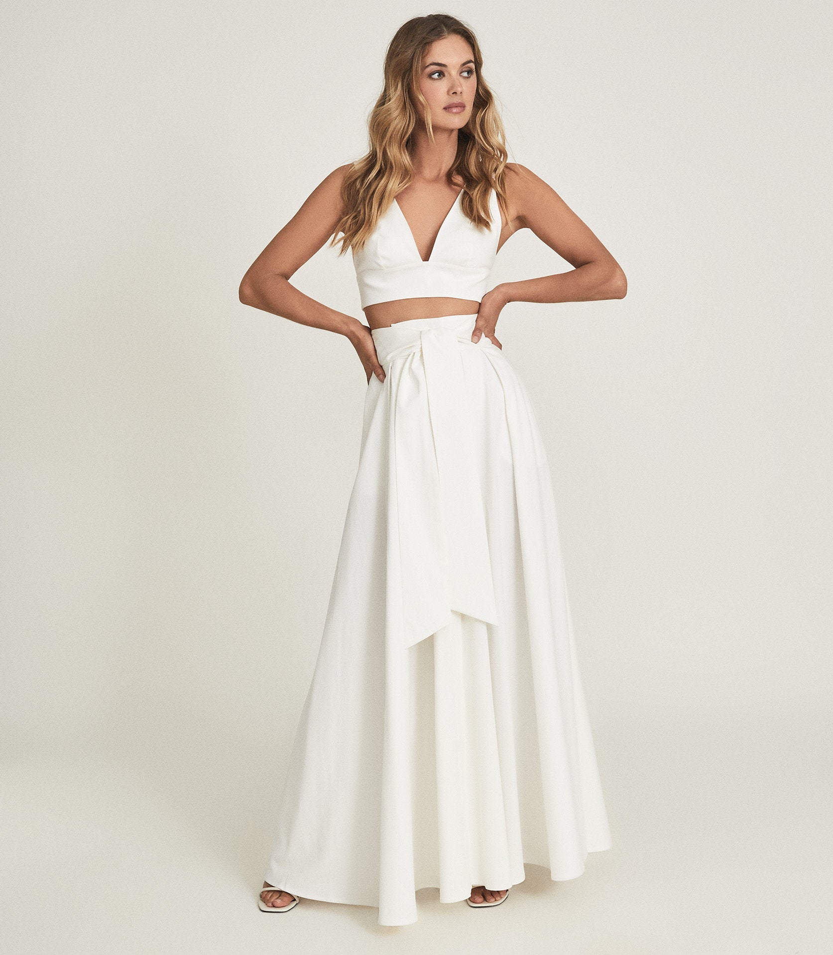 Reiss Gigi gather detailed maxi skirt, White/Cream