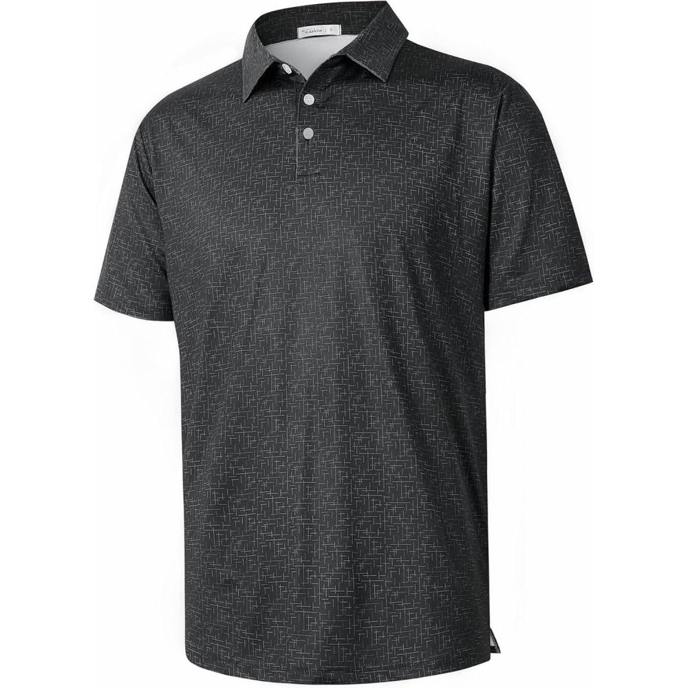 ELETOP Men’s Golf Polo Shirts Short Sleeve Moisture Wicking Hawaiian Tropical Polos Performance Golf Shirts for Men Dry Fit(113 Black)