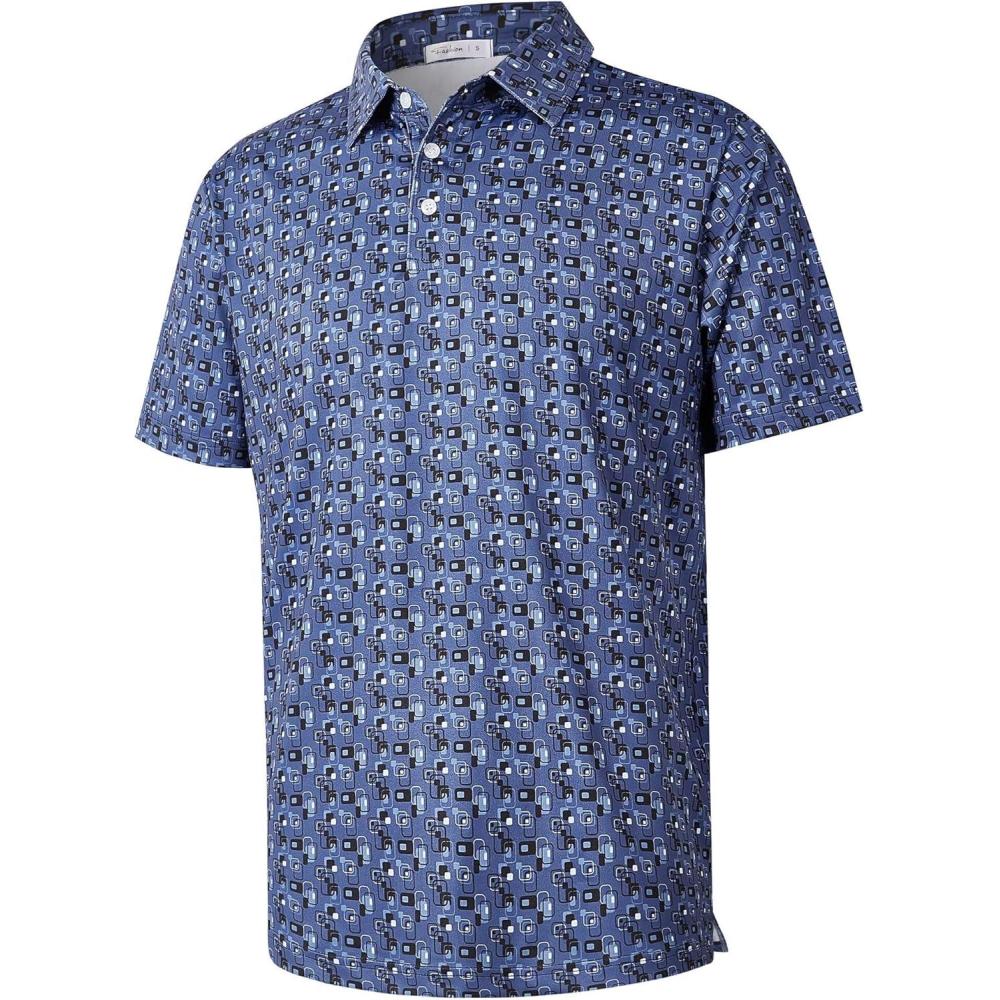 ELETOP Men’s Golf Polo Shirts Short Sleeve Moisture Wicking Hawaiian Tropical Polos Performance Golf Shirts for Men Dry Fit(141 Square Dark Blue)