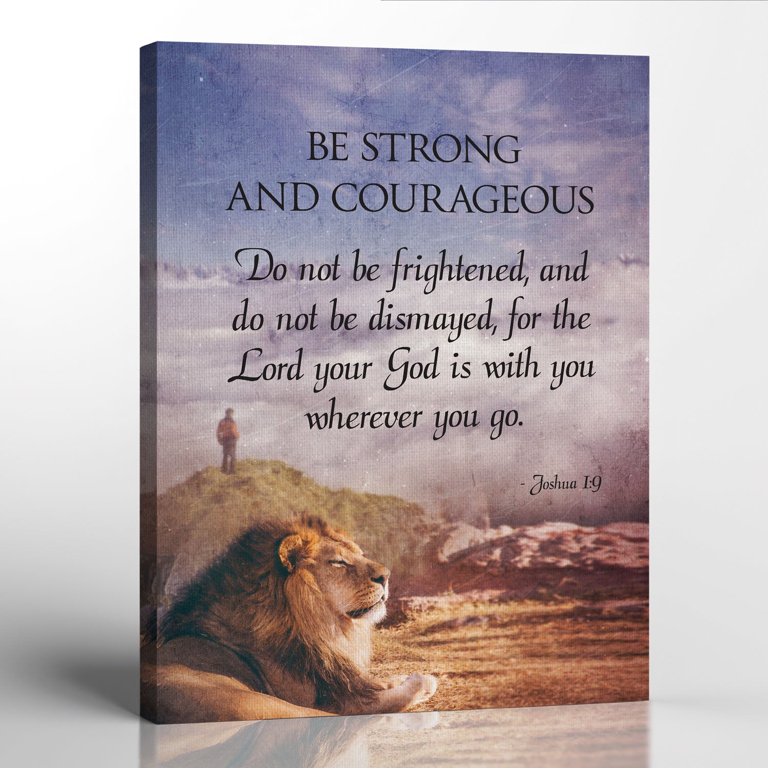 Strong and Courageous Joshua 1 9 Canvas Print, Christian Room Decor, Be Strong Poster, Courageous Sign, Ready To Hang for Living Room Home Wall Art, C2101