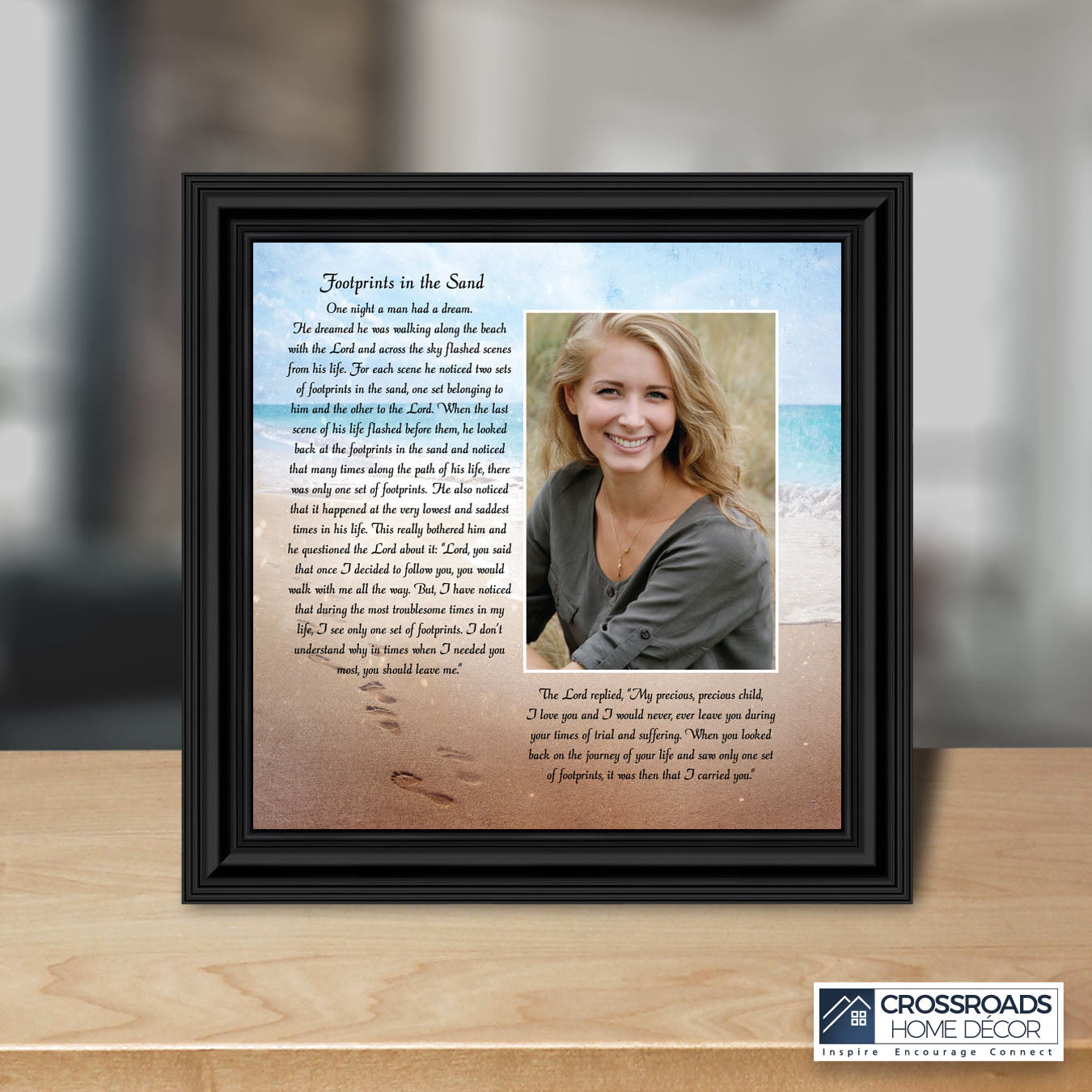 Footprints in the Sand Inspirational Wall Art, Beach Decor, Christian Gifts for Women and Men, Christian Wall Decor, Get Well Soon, Encouraging Scripture Wall Art, Framed Sympathy Gift, 6380